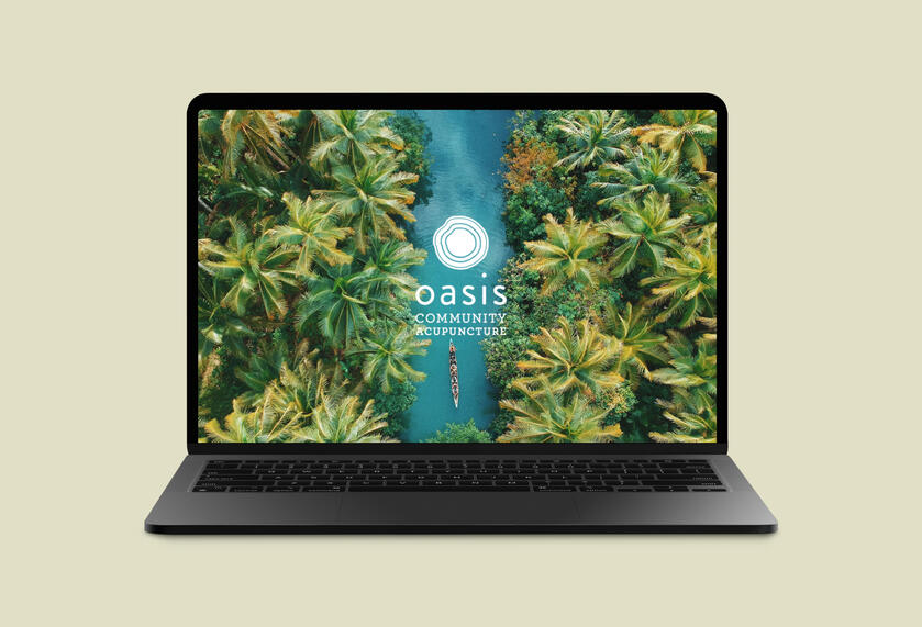Founded in 2008, Oasis Community Acupuncture aims to bring affordable and accessible treatment to all. The logo's icon is inspired by topographic maps. The layers create a focal point and illustrate the letter “o”. The color scheme reflects herbal treatments and sterility.