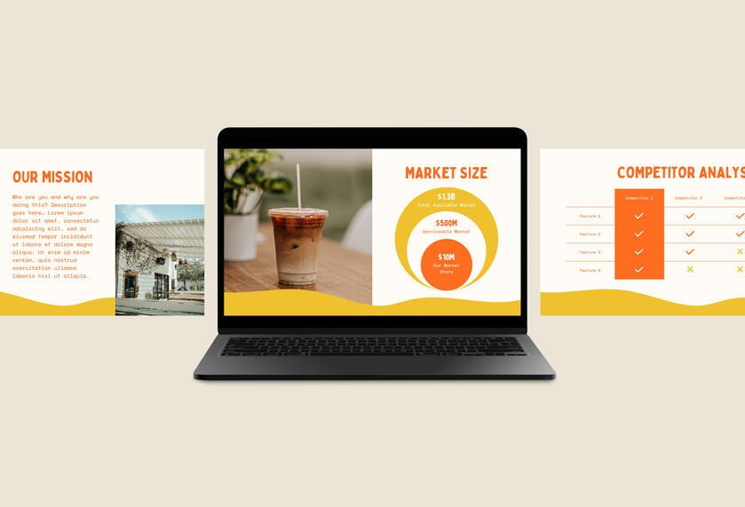 ICA Fund helps mentor and invest in Bay Area businesses. One aspect they guide in is building an investor presentation deck. These select slides come from full presentations (12+ slides) designed to align with each brand. (Any identifying text or imagery have been changed for confidentiality reasons.)